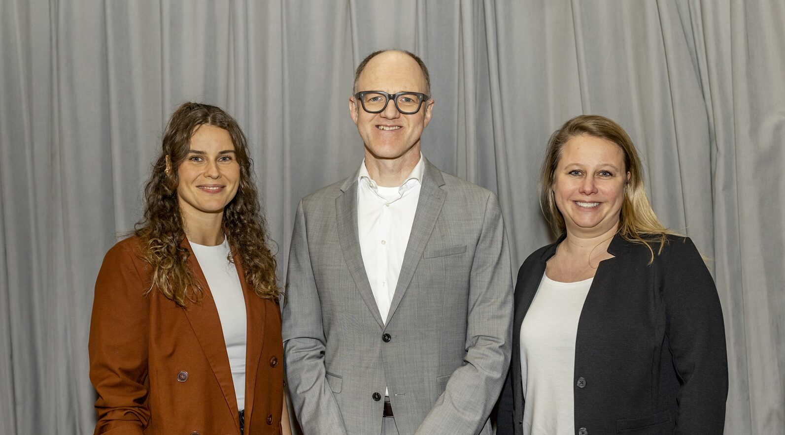 Bildunterschrift: (v.l.n.r.): Carolin Bein (Housing First Hamburg), Reiner Schäfer (Behrens-Stiftung), Jessica Nowek (Heimstaden); Foto: Heimstaden / Jannette Kneisel