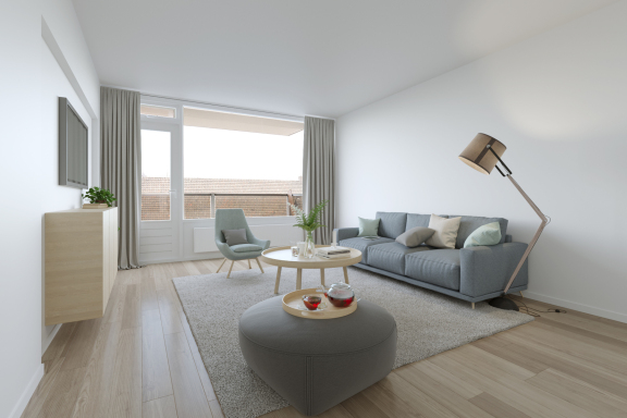 Vanuit de woonkamer heb je direct toegang tot het balkon. Het balkon is circa 6 m2.