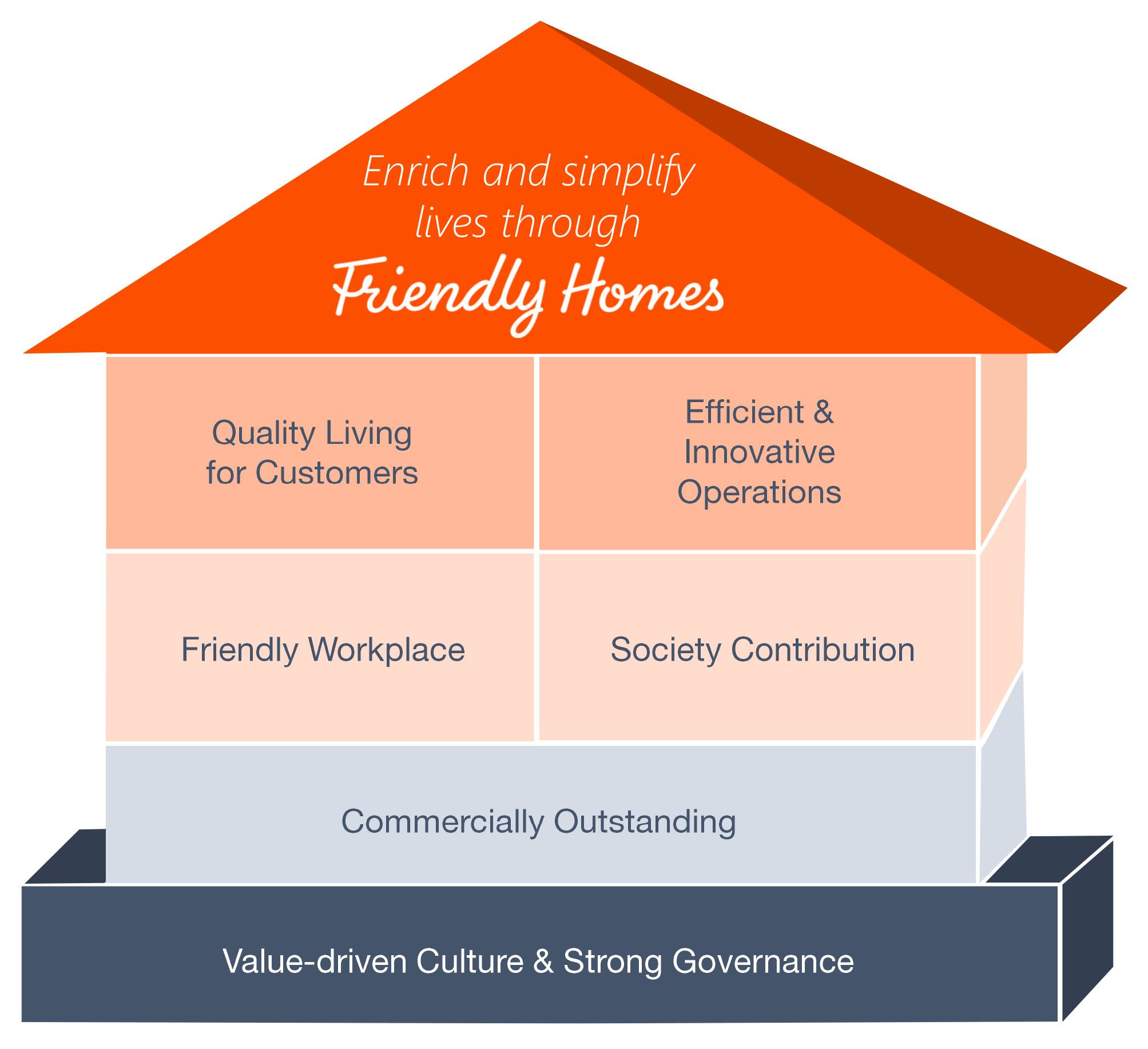 Med en verdidrevet kultur som er bygget på våre skandinaviske verdier og med solid styring, har vi en tydelig strategi for å oppfylle vår visjon om å skape hjem med omtanke for en enklere og bedre hverdag – Friendly Homes. Utover det å tilby boliger, sikrer vi bærekraftig, langsiktig avkastning for våre eiere og meningsfulle bidrag til samfunnet. Vi fremmer et inspirerende og inkluderende arbeidsmiljø, og sørger for at våre leietakeres behov blir møtt.