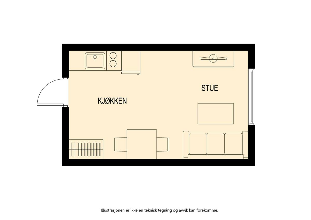 Oppholdsrom med kjøkken