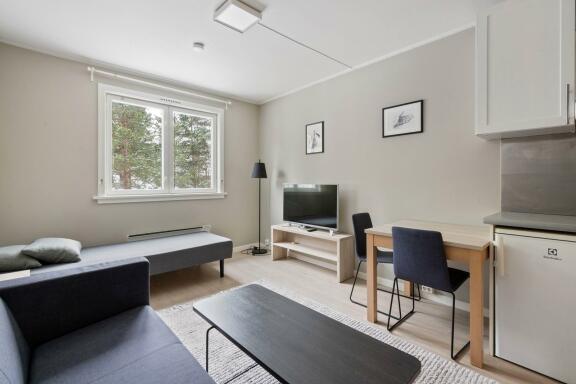 Oppholdsrom med kjøkken.