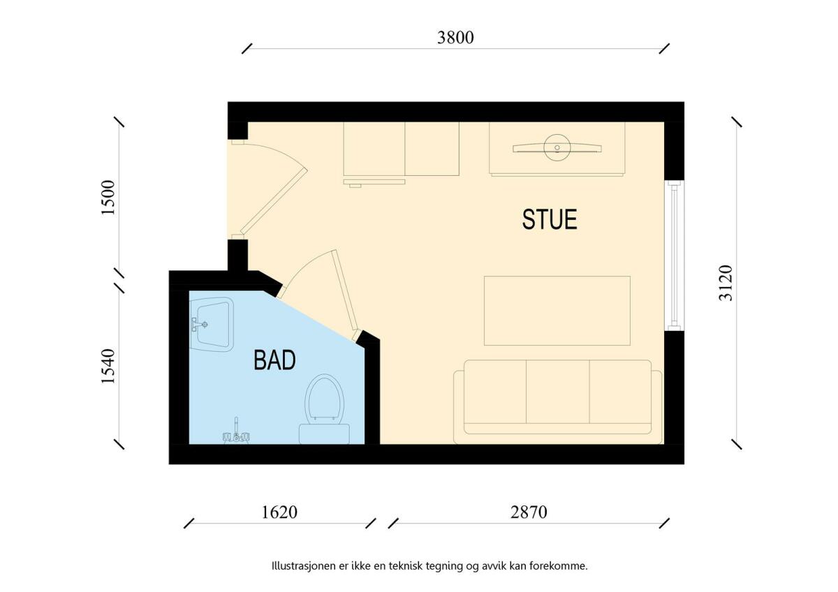 Flott 1 roms hybel med høy standar, fullt møblert og vegger malt med delikate farger, flislagt bad med varmekabler. Du har også tillgang til stort felleskjøkken i 2 etg.