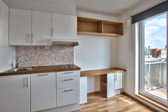 Moderne 1-roms leilighet med smarte løsninger for maksimal utnyttelse av plassen. Gården ble totalrenovert i 2010 og holder en generelt høy standard. Leiligheten inneholder stue med åpen kjøkkenløsning og balkong, som til sammen utgjør et flott oppholdsrom. Balkongen bidrar til den lyse og luftige opplevelsen man får av rommet. Dette er en perfekt leilighet for en person.