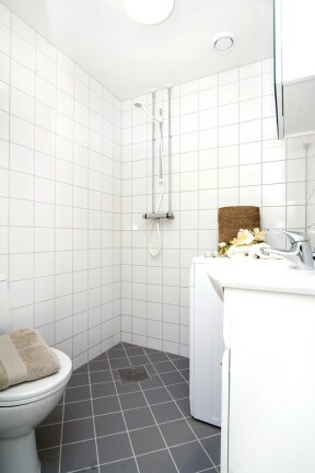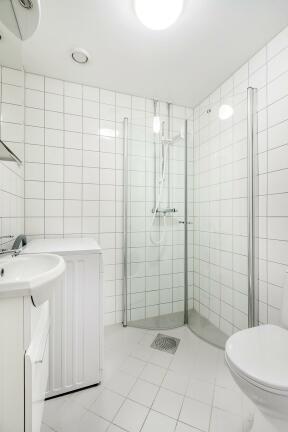 Bad: Flislagt bad med varmekabler og opplegg for vaskemaskin