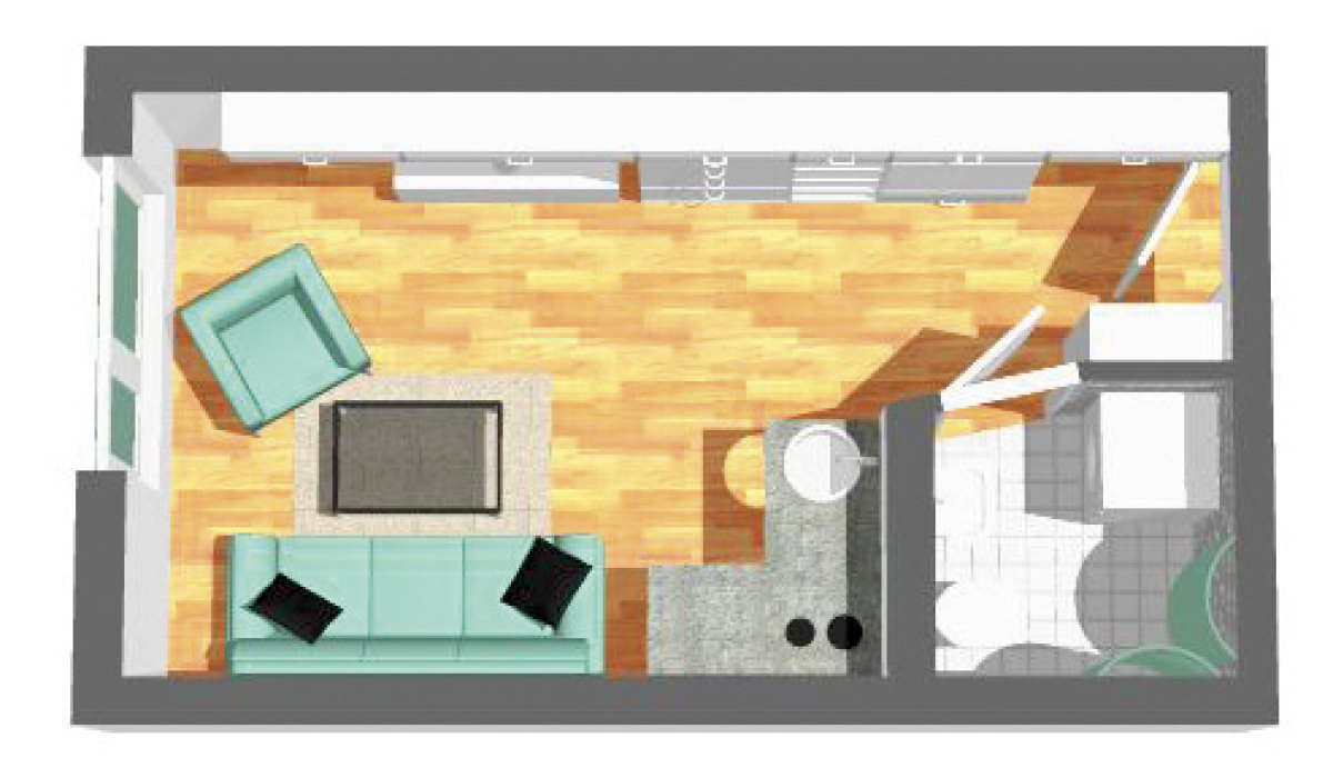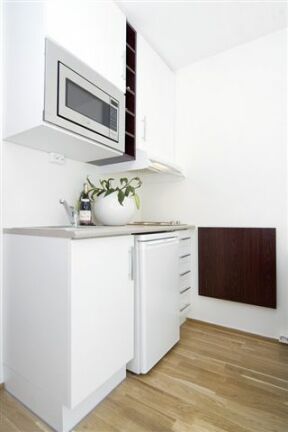 Arealeffektiv 1-roms leilighet, med smarte løsninger for maksimal utnyttelse av plassen. Leiligheten holder en generelt god standard, og kan tilpasses alle situasjoner i hverdagen. Alle leilighetene har eget kjøkken og bad, og er innredet med en praktisk veggseksjon. Plass til tv-en, fyldige skapløsninger, integrerte hvitevarer og møbler tilpasset leiligheten er bare noen av fordelene du får med i leien. Dette er en perfekt leilighet for en person.