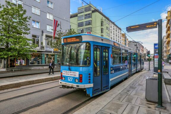 God offentlig kommunikasjon i umiddelbar nærhet med trikk, T-bane og buss.