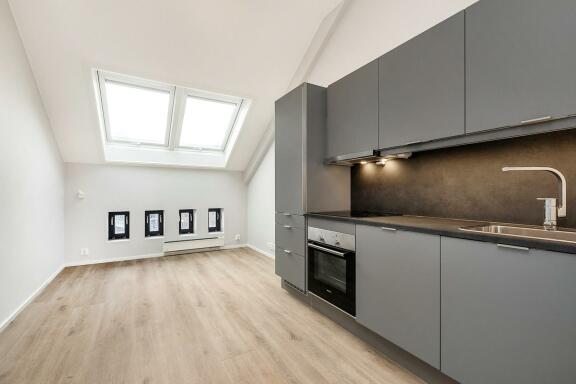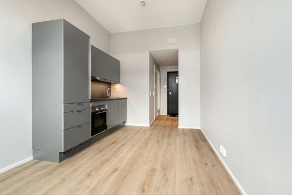 Umøblert. Kjøkkenhvitevarer medfølger.