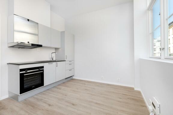 Helt ny hybel leilighet med spennende arkitektur, HTH kjøkkeninnredning med Siemens hvitevarer, Duravit baderominnredning, heis, sykkelparkering, felles takterrasse mm. Beliggende attraktivt til på Kiellandsplass med et rikt utvalg av cafeer, butikker, kollektiv transport og rekreasjonsmuligheter. Leiligheten har et areal på 18 m2 BRA med en herlig kombinasjon av moderne byggteknikk og klassisk arkitektur.