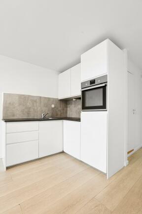 Kjøkken: Hvit innredning. Integrerte hvitevarer.