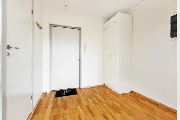 Entré med plass til yttertøy og sko. Tilhørende garderobeskap medfølger.