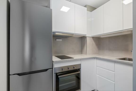 Moderne 1-roms leilighet med åpen kjøkkenløsning og balkong, som til sammen utgjør et flott oppholdsrom. Balkongen bidrar til den lyse og luftige opplevelsen man får av rommet. Boligen ligger i et veletablert boligområde svært sentralt innenfor bomringen.