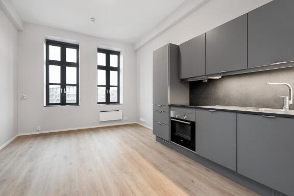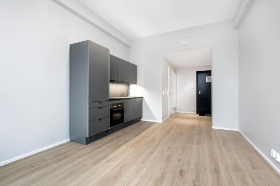 Umøblert. Kjøkkenhvitevarer medfølger.