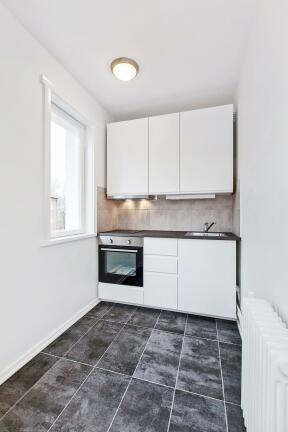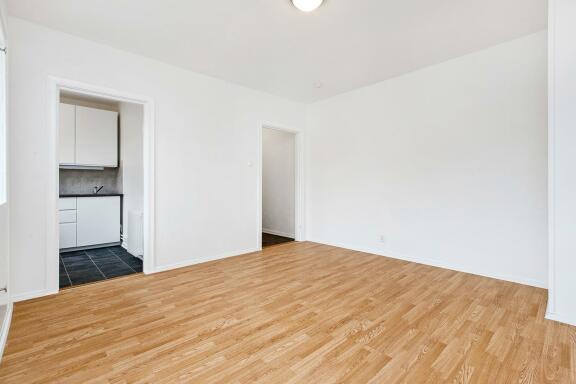 Entré, stue med utgang til balkong, separat kjøkkenløsning, bad.