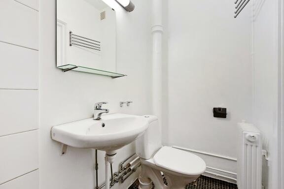 Bad: Flislagt gulv, vegger med malte flater