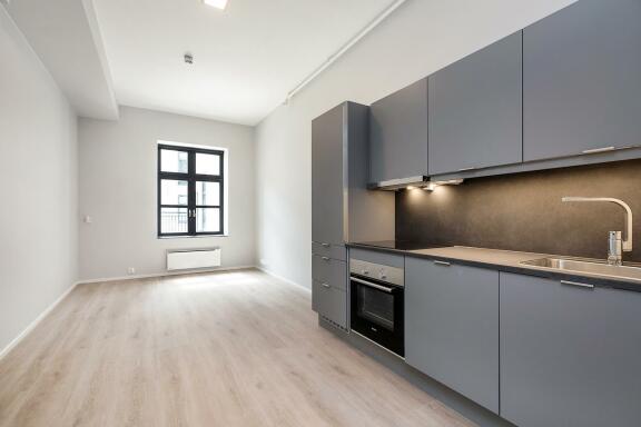 Umøblert. Kjøkkenhvitevarer medfølger.