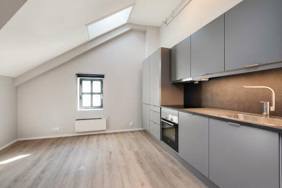 Umøblert. Kjøkkenhvitevarer medfølger.