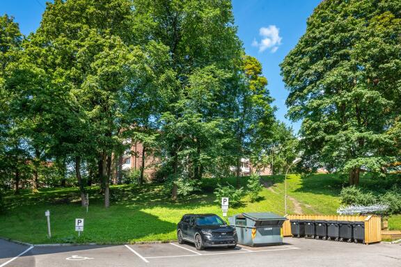Det er mulighet for leie av biloppstillingsplass. Kontakt Aimo Park for nærmere informasjon om pris og vilkår. For mer informasjon om parkeringsanlegget, se www.aimopark.no. For øvrig gateparkering iht. områdets bestemmelser.