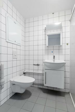 Bad: Fliser, varmekabler, opplegg for vaskemaskin