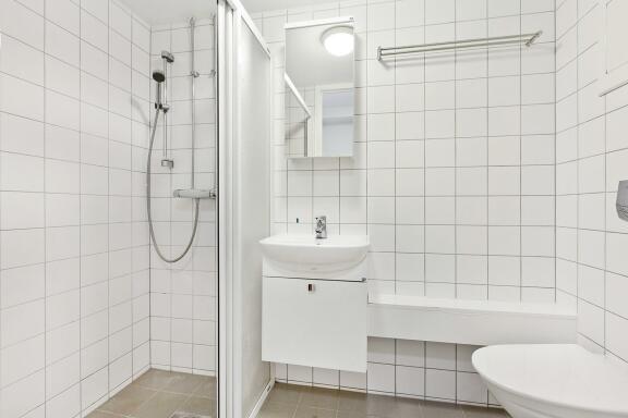 Bad: Fliser, varmekabler, opplegg for vaskemaskin