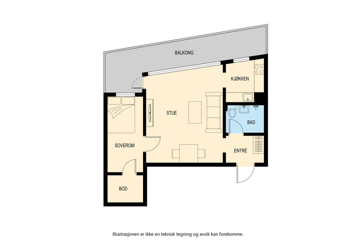 Er du interessert i denne leiligheten, oppfordrer vi deg til å sende oss din e-postadresse samt telefonnummer, slik at vi får fulgt deg opp på en god måte. Bildene kan være tatt på et tidspunkt hvor leiligheten har vært helt eller delvis møblert, og med møbler og utstyr som ikke følger med. Plantegning og bilder kan også være fra en tilsvarende leilighet i samme eiendom. Arealet er beregnet ut fra tegninger, og kan avvike noe fra virkeligheten. Det er derfor viktig at du besiktiger leiligheten.
