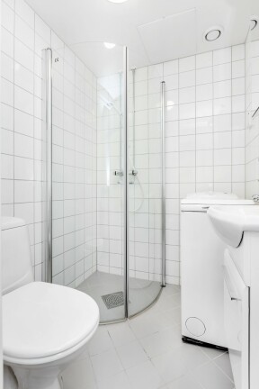 Bad: Flislagt bad med varmekabler og opplegg for vaskemaskin