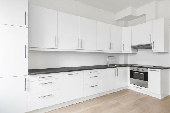 Kjøkken: Moderne kjøkken med god lagringsplass og integrerte hvitevarer.