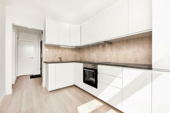 Entré, stue med utgang til balkong, separat kjøkken, soverom, bad og gjestetoalett