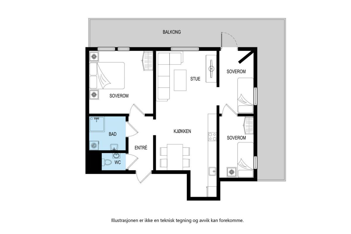 Er du interessert i denne leiligheten, oppfordrer vi deg til å sende oss din e-postadresse samt telefonnummer, slik at vi får fulgt deg opp på en god måte. Bildene kan være tatt på et tidspunkt hvor leiligheten har vært helt eller delvis møblert, og med møbler og utstyr som ikke følger med. Plantegning og bilder kan også være fra en tilsvarende leilighet i samme eiendom. Arealet er beregnet ut fra tegninger, og kan avvike noe fra virkeligheten. Det er derfor viktig at du besiktiger leiligheten.