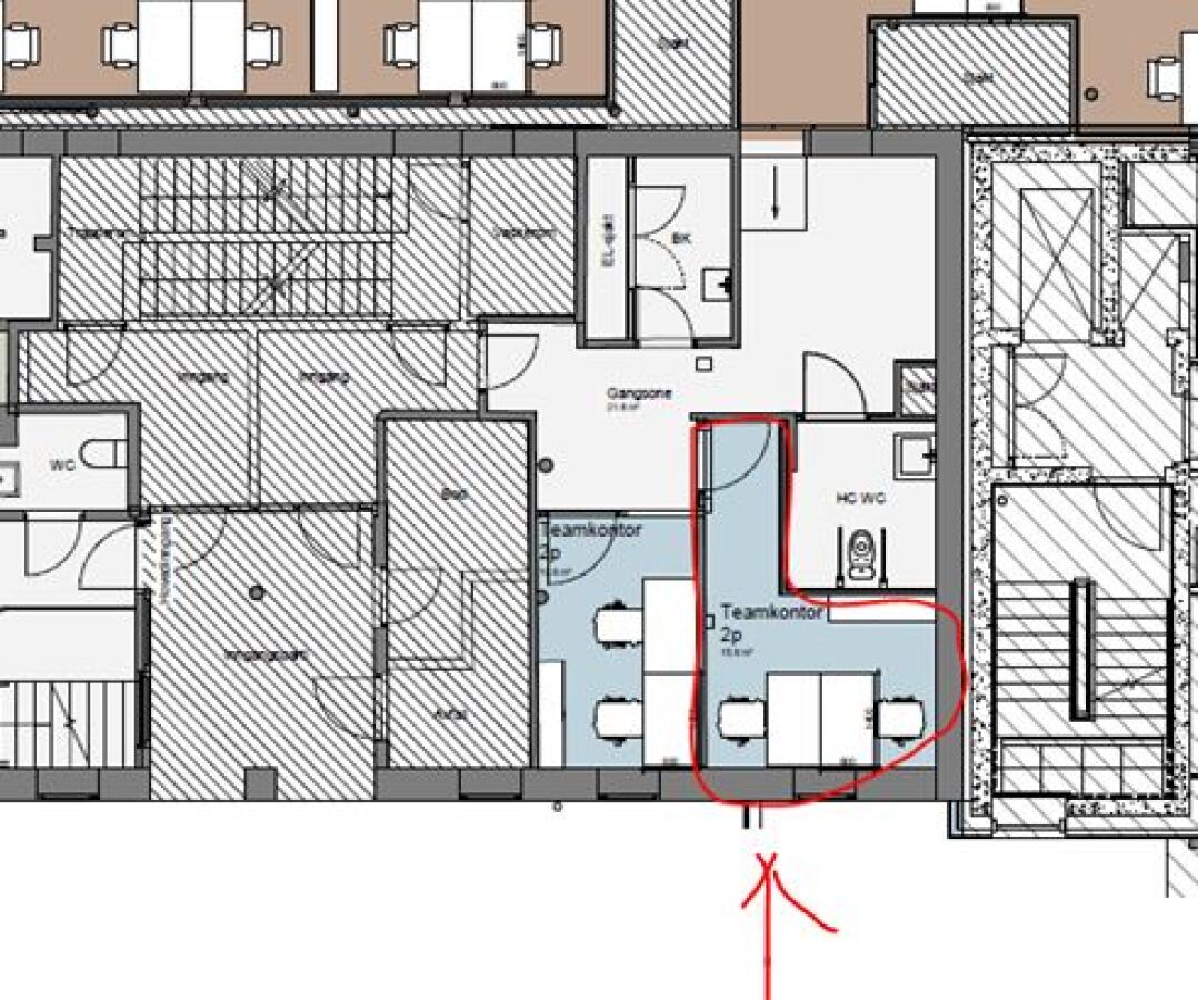 Cellekontor i fantastisk kontorfellesskap med treningssenter