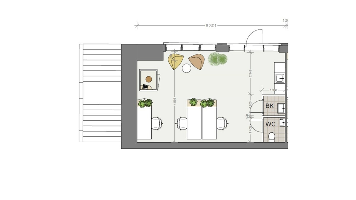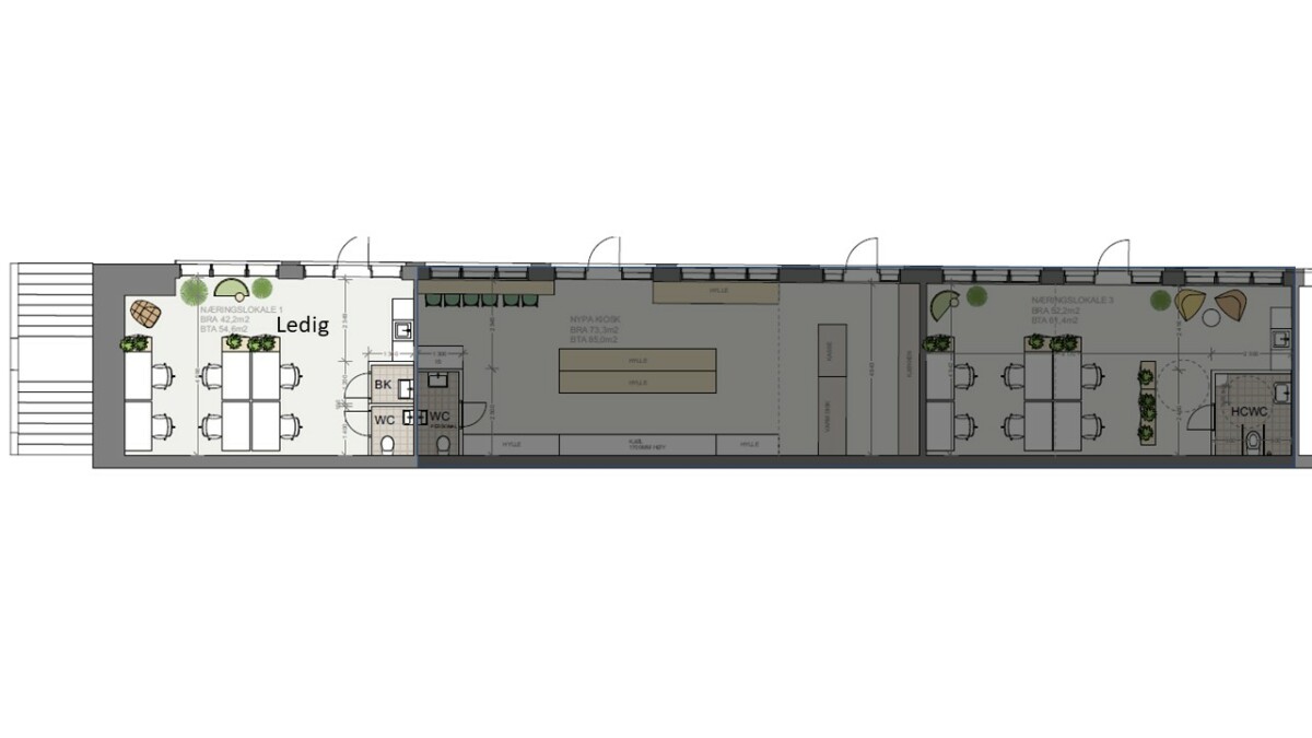 Innbydende og moderne kontorlokale på bakkeplan