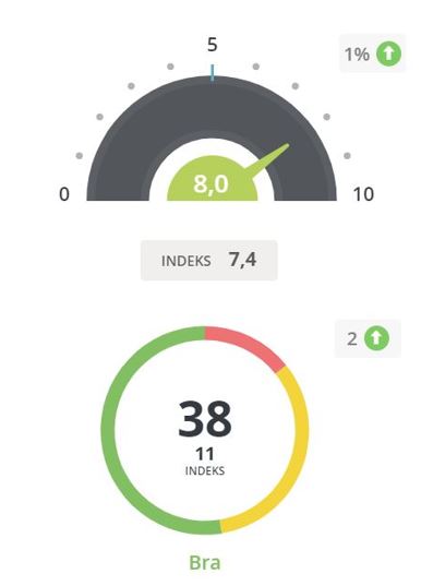 Wskaźnik eNPS (Employee Net Promoter Score), ma przełożenie na jeszcze jeden czynnik, czyli to, z jaką chęcią nasi pracownicy polecają Heimstaden na zewnątrz, wśród znajomych i rodzin. Tutaj wynik wynosi 38 przy indeksie równym 11.