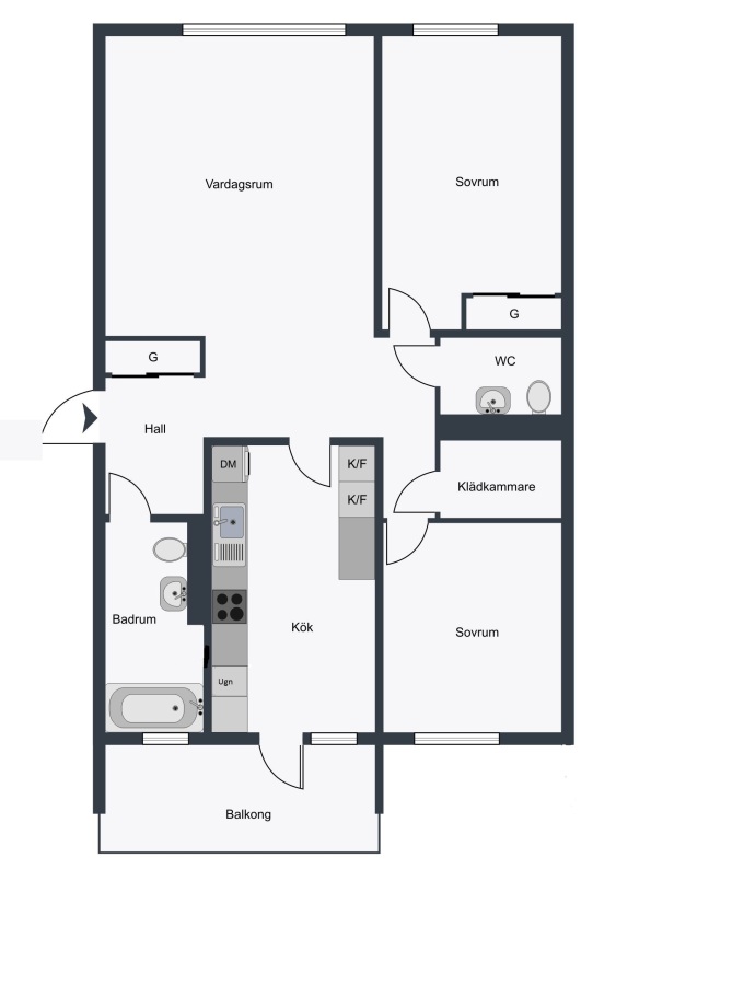 | Antal rum: | 3 rum och kök |