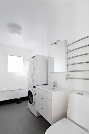 Badrummet är modernt med badkar, kombinerad tvätt/torkmaskin, handdukstork och golvvärme (uppvärmningskostnad tillkommer). Dessutom finns ett separat WC, vilket gör bostaden extra praktisk för familjer. Lägenheten har även säkerhetsdörr och tillgång till entréförråd samt gemensam tvättstuga i fastigheten.