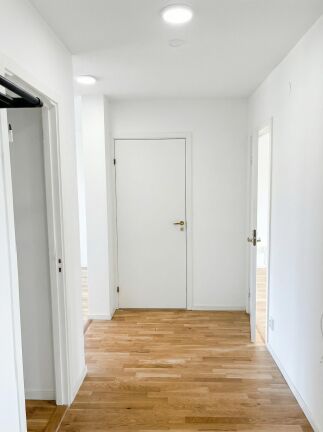 Denna lägenhet erbjuder en genomgående stilren interiör med vitmålade väggar och parkettgolv som skapar en ljus och harmonisk atmosfär. Det renoverade köket är utrustat med diskmaskin, induktionshäll och varmluftsugn – perfekt för både vardag och middagsbjudningar.