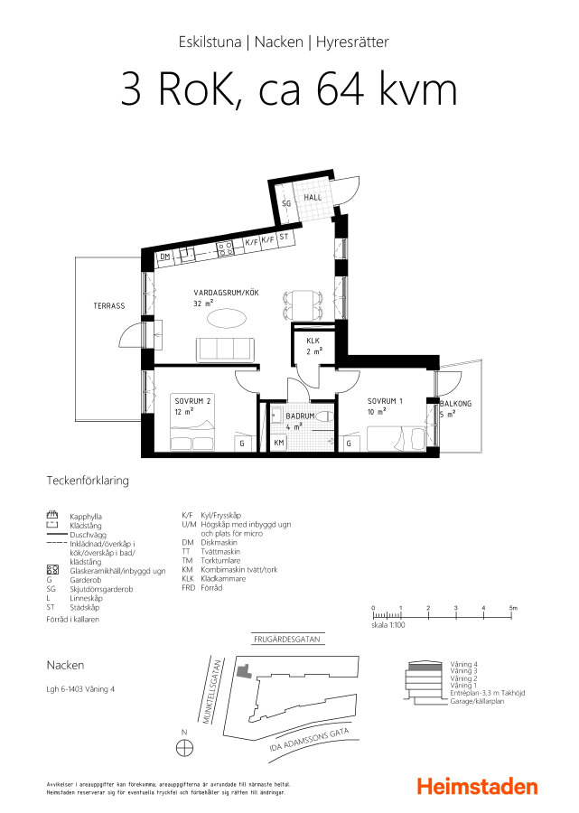 Här möts du av ett ljust och modernt hem med fokus på funktion och kvalitet. Planlösningen är öppen och social, och interiören präglas av ljusgrå väggar samt vacker 3-stavsekparkett. Köket är ett fullt utrustat Marbodalkök med vitvaror från Electrolux, och badrummet är helkaklat i ljusa färger. Goda förvaringslösningar bidrar till en smidig och bekväm vardag.