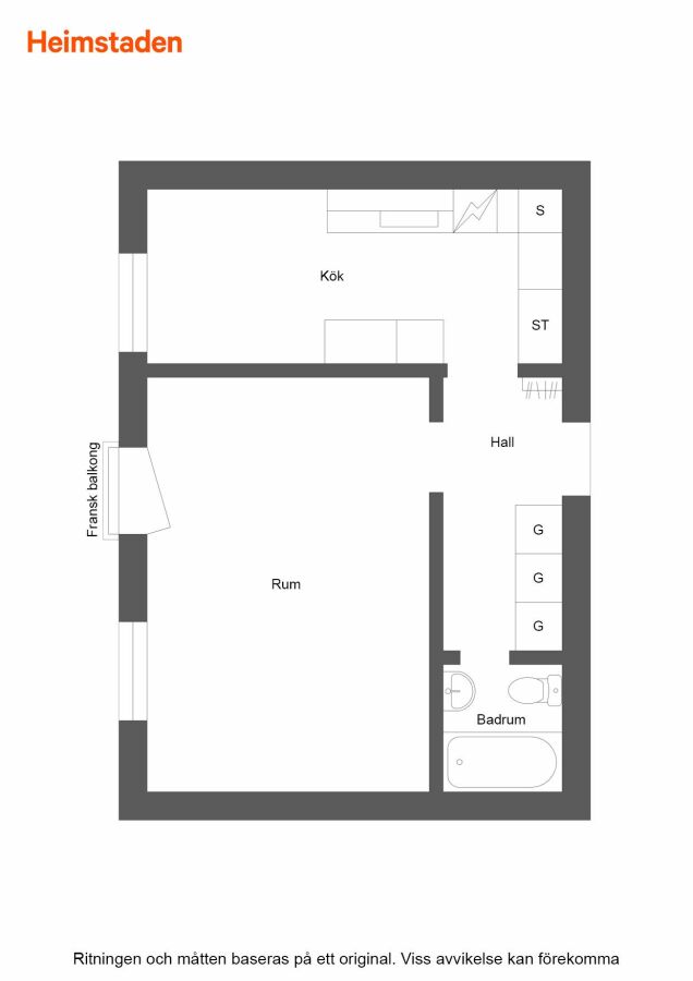 Lägenheten består av ett rum och kök, där köket är möblerbart och erbjuder plats för matbord. Rummet är lätt att möblera och den franska balkongen ger fint ljusinsläpp och en luftig känsla. Badrummet är utrustat med badkar.
