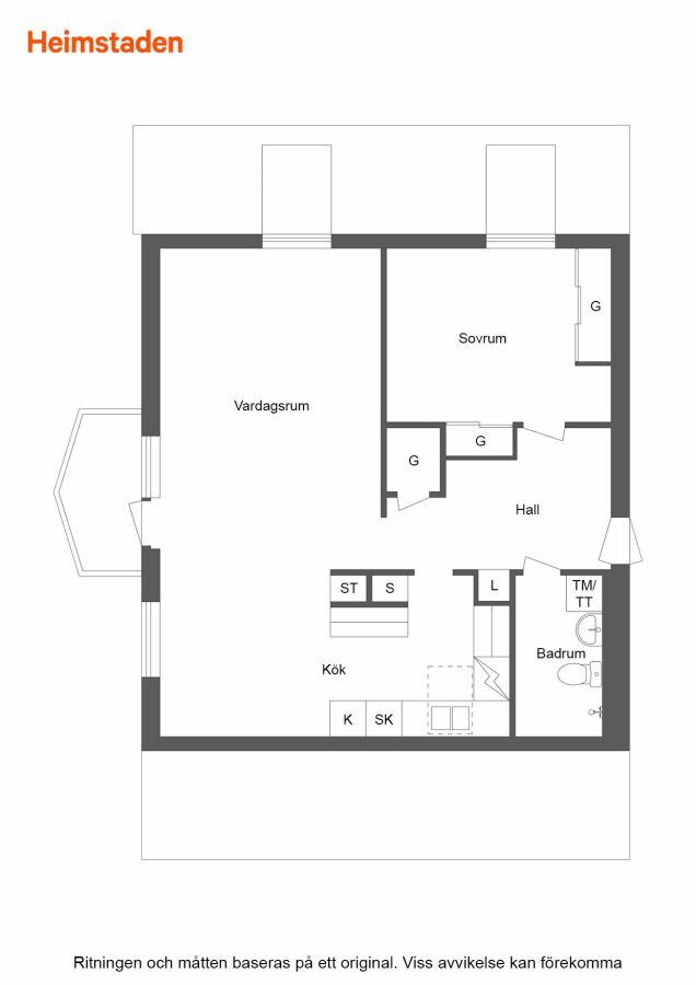 I annonsen finns exempelbilder som visar materialval och standard från en liknande lägenhet i fastigheten. Faktiskt utförande kan därför skilja sig något. Reservation för eventuella felskrivningar och avvikelser i planlösning