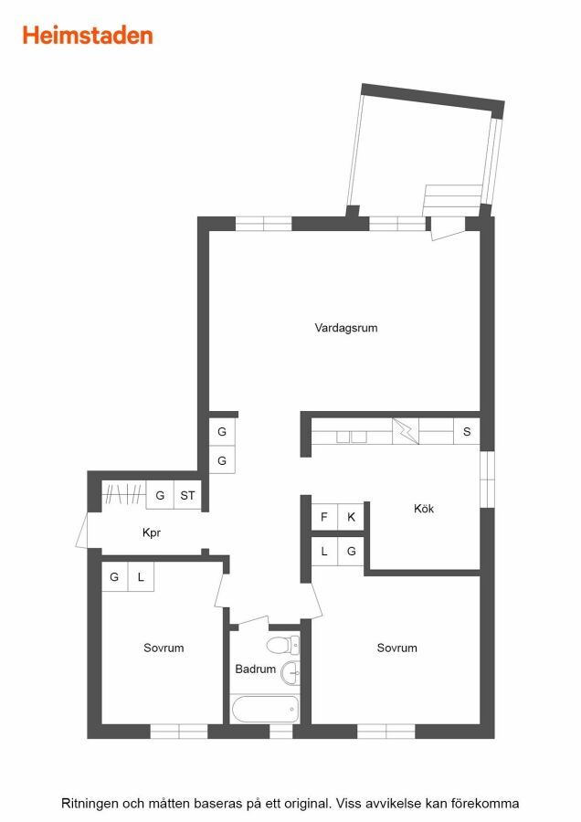 Planlösning och utförande kan i vissa fall skilja sig från verkligheten. Observera, badrummet är utrustat med dusch samt tvättmaskin och torktumlare istället för badkar.