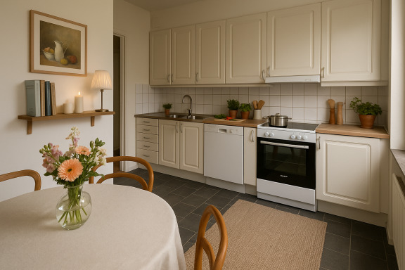 - Rymligt vardagsrum med utgång till balkong – perfekt för morgonkaffet eller en lugn kvällsstund.
