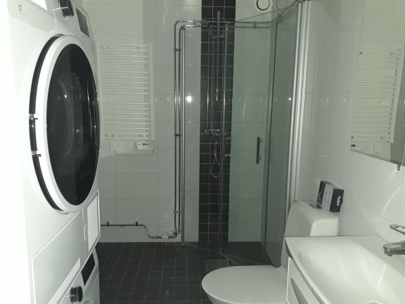 - Helkaklat badrum med tvättmaskin och torktumlare