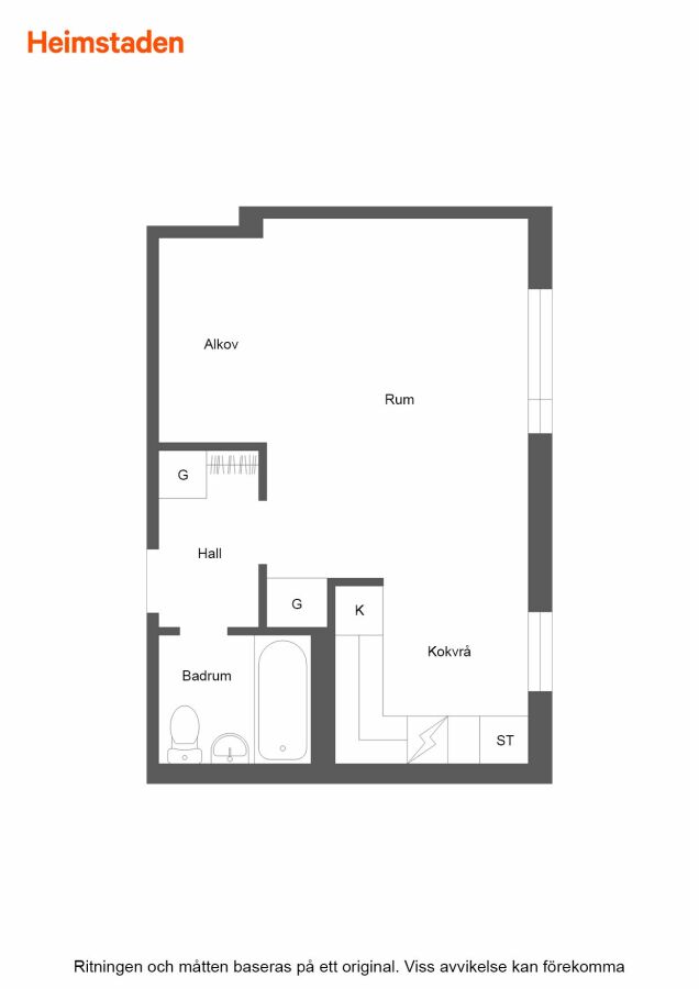 Lägenheten erbjuder ett väl tilltaget vardagsrum där sovalkoven ger en mer avskild sovplats utan att ta onödig yta. Kokvrån är utrustad med vitlackerade köksluckor och en funktionell arbetsyta, vilket gör det enkelt att laga mat trots den kompakta storleken.