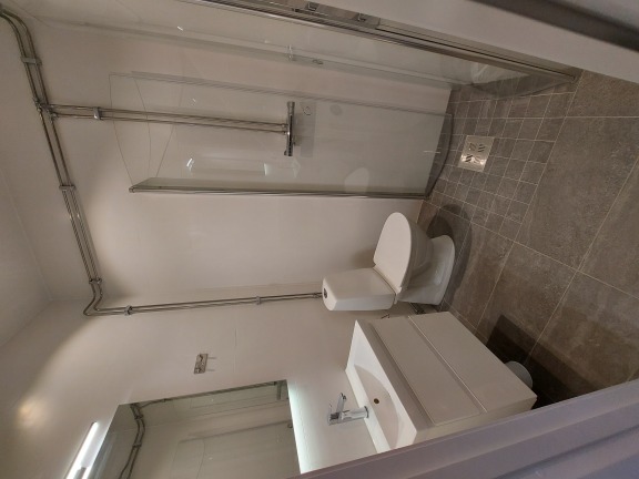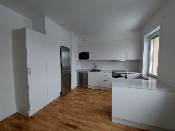 Lägenheten totalrenoverades 2021 och erbjuder ett stilrent och funktionellt boende. Köket är fullt utrustat med diskmaskin, inbyggd mikrovågsugn, ljusa kakelväggar och elegant stenbänkskiva. Badrummet har helkaklade väggar, klinkergolv, infällda spotlights, golvvärme och handdukstork – allt för en modern och bekväm vardag.