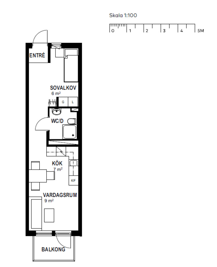 Lägenheten erbjuder en öppen och inbjudande planlösning där varje kvadratmeter är genomtänkt. Det ljusa allrummet ger plats för både säng, soffhörna och matplats, medan köket är praktiskt utformat för vardagens behov. Stora fönster ger ett fint ljusinsläpp och skapar en luftig känsla. Badrummet är fräscht och funktionellt, och förvaringsmöjligheterna bidrar till ett ordnat och bekvämt boende.
