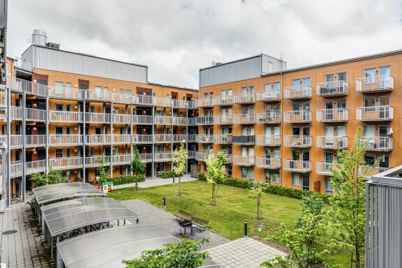 Här bor du i ett modernt kvarter med genomtänkta lösningar och bekvämligheter som förenklar vardagen.