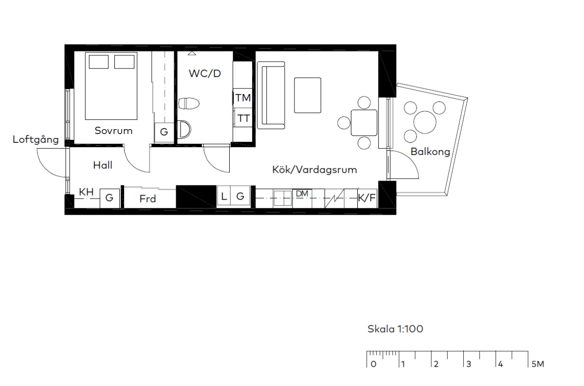 Köket är modernt utformat med plats för matbord och utrustat med diskmaskin. Från vardagsrummet nås den rymliga balkongen som passar perfekt för avkopplande sommarkvällar. Badrummet är helkaklat och utrustat med dusch, tvättmaskin och torktumlare. Förvaring finns antingen i lägenheten eller i källarförråd, beroende på bostad.