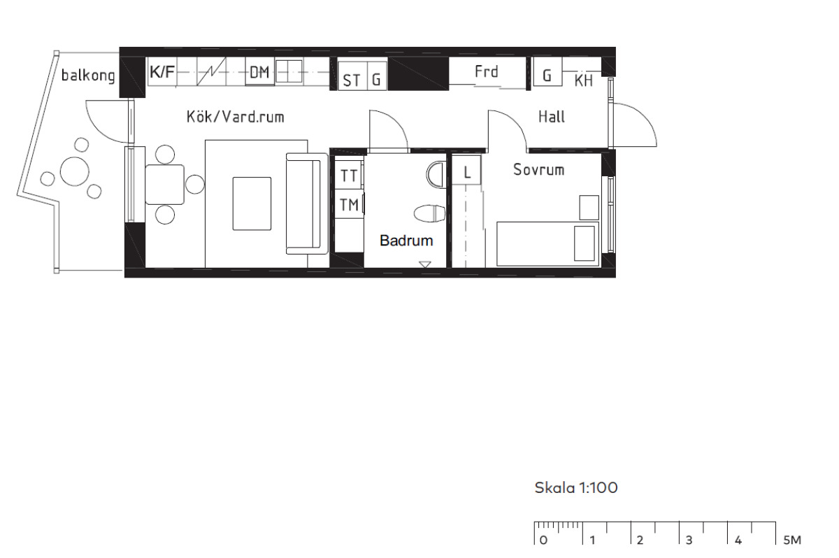 Köket är modernt utformat med plats för matbord och utrustat med diskmaskin. Från vardagsrummet nås den rymliga balkongen som passar perfekt för avkopplande sommarkvällar. Badrummet är helkaklat och utrustat med dusch, tvättmaskin och torktumlare. Förvaring finns antingen i lägenheten eller i källarförråd, beroende på bostad.