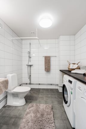• Helkaklat badrum med dusch, tvättmaskin och torktumlare