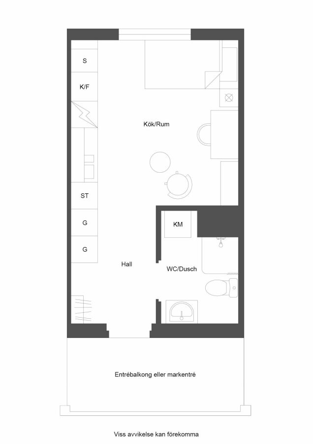 Lägenheten är 23 kvadratmeter och byggdes 2016. Här får du ett smart planerat hem med kokvrå, ett rymligt badrum med kombinerad tvätt- och torkmaskin, och helt nya bas möbler från IKEA (juli 2025).