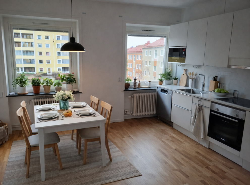 Värme, varmvatten samt Tele2:s grundutbud för TV ingår. Hushållsel och bredband tillkommer och tecknas separat av hyresgästen.