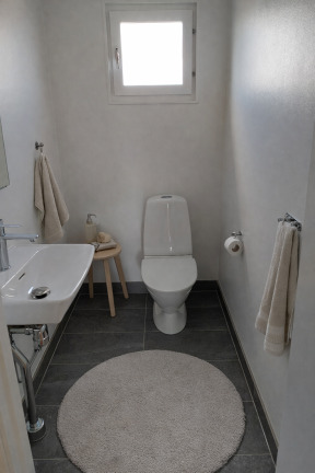 - Två toaletter, varav den ena är helkaklad och utrustad med praktisk tvättpelare